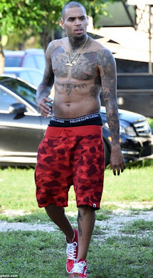 - Chris Brown shows off his weird leg tattoos